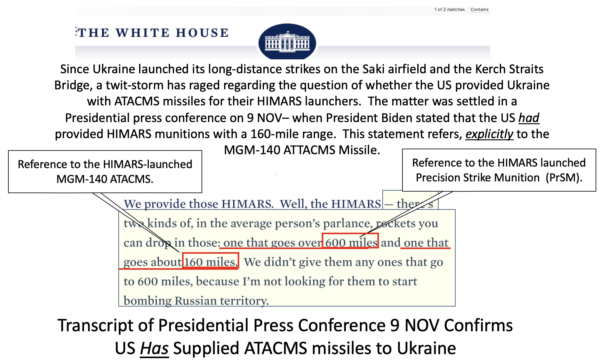 @sailor: möglicher Weise haben die ukrainischen Raketen (via Himars) doch eine größere Reichweite, falls vom rechten ("westlichen") Ufer des Dnepr abgeschossen. Siehe hier: