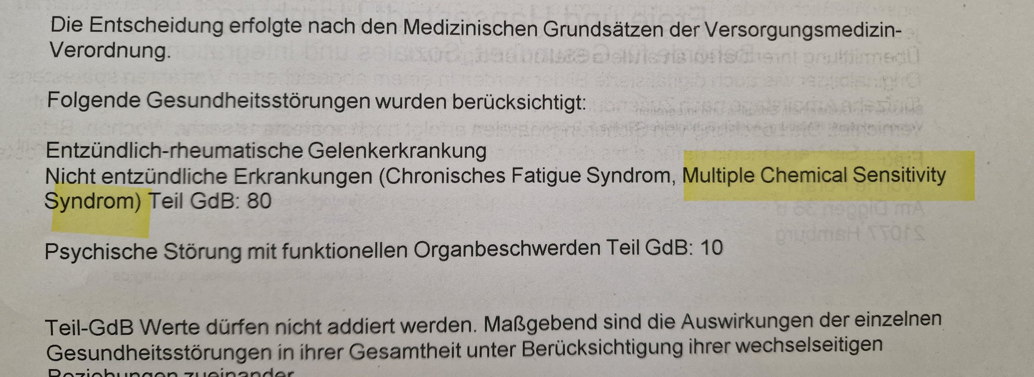 Nuja, Hauptsache Behindertenausweis. MCS kann man haben - oder auch nicht.