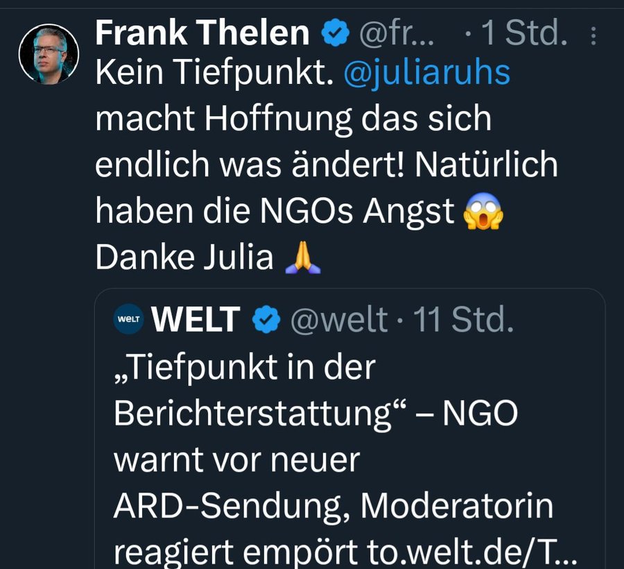 Übrigens, funktioniert diesen Format, genau mit den Methoden mit denen auch unsere Verschwörungstheoretikerklientel arbeitet. Ich bin mal gespannt wann besorgte "Nachfragen" zu Impfung, Schulmedizin und 9/11 kommen. Man wird doch mal zweifeln dürfen.